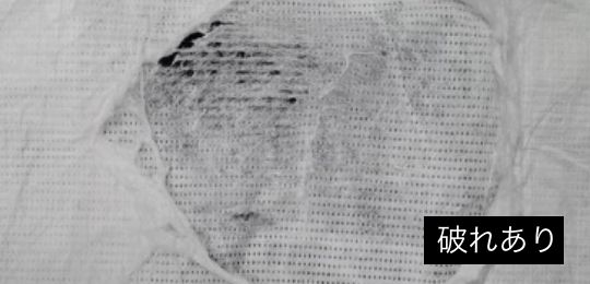 他社製品は、100回摩耗後の生地に破れが発生し、耐水圧が著しく低下。